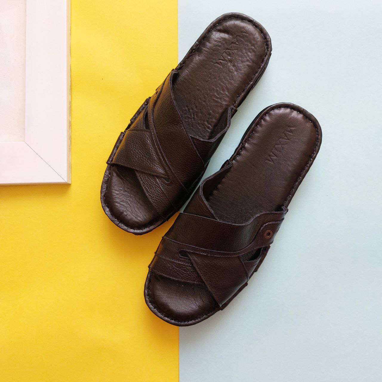 صندل نیکان مردانه چرم طبیعی ، دور دوخت ، دست دوز ، زیره ایتالیایی ، نرم سبک ، زیره تمام pu